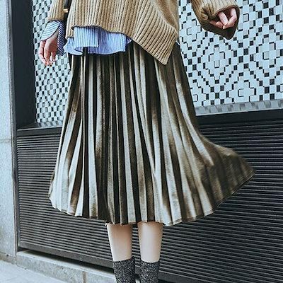 Buy Women's 2022 new autumn and winter velvet skirt women's loose middle length pleated skirt long skirt in Nigeria