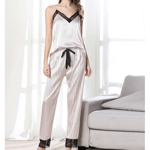 Its a satin two-piece pajama set with cami and shors. The camisole features adjustable spaghetti strap, backless and high cut shorts with elastic waist and lace trim decoration. Its definitely a likable garment for the ladies that want to feel sexy at any time. it can be worn at anytime indoors to relax.