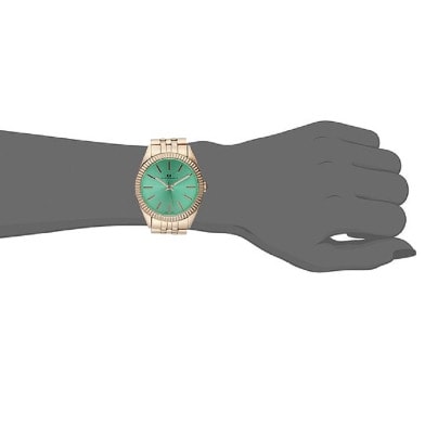 Stainless steel, stainless steel bracelet, green dial, quartz movement, scratch resistant mineral, water resistant up to 3 ATM - 30 meters - 99 feet