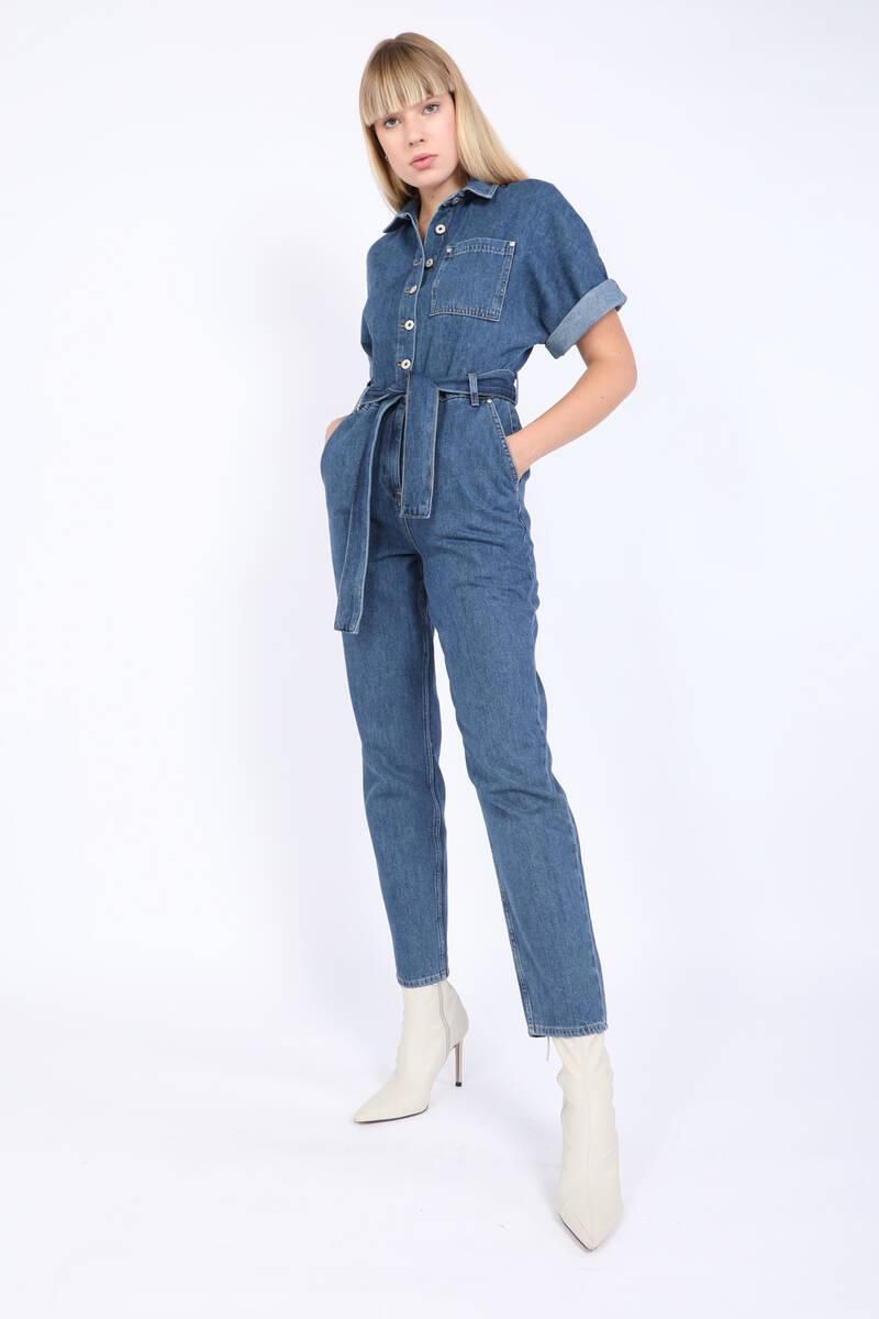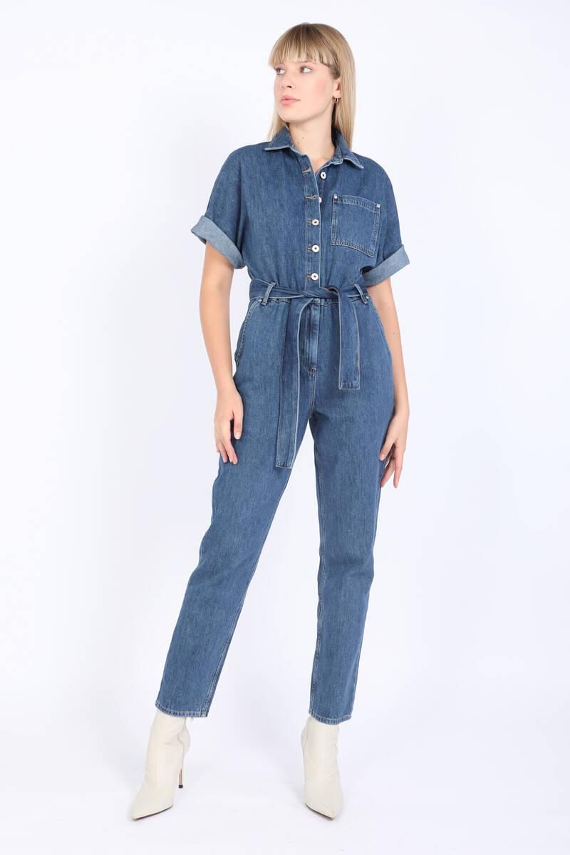 Women's Bat Sleeve Jean Jumpsuit Dark Blue