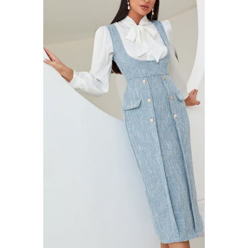 Buy Women's Blue Pinafore With White Shirt in Nigeria