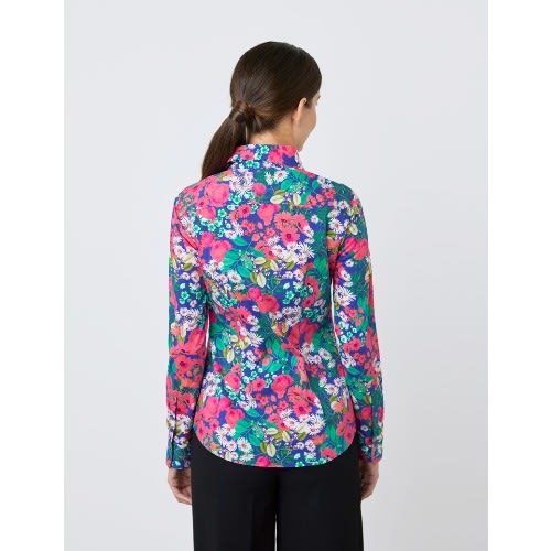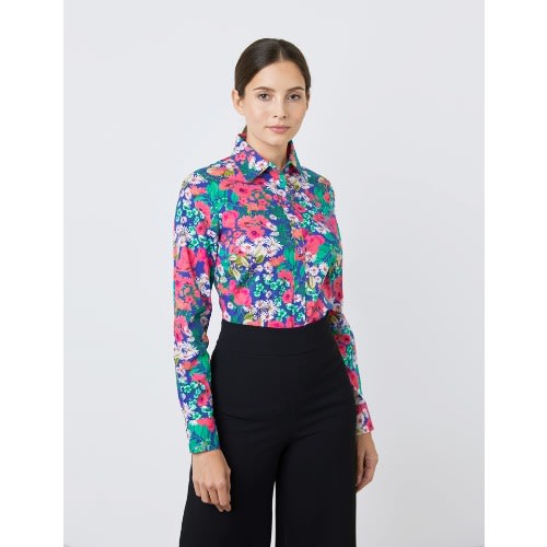 Women's Floral Semi-fitted Shirt - Single Cuff - Navy & Green