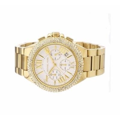 This Micheal kors is simply a stand out from the crowd. It is a luxury of class for those that knows what standing out means. it is a detailed perfection. This watch will always comand it due respect and also for those that puts it on. Geared for a more fashion-conscious consumer this vintage-inspired Michael Kors timepiece is just what the doctor ordered Showing off its gold stainless steel case and sharp white dial this premier timepiece combines a sleek classic design with a precise analog quartz movement for optimum accuracy and functionality This watch also offers a high-quality gold stainless steel band and fold over clasp making this watch to be a diverse accessory option with a lot to offer Additional features include chronograph Roman numeral display and simulated crystals bezel
