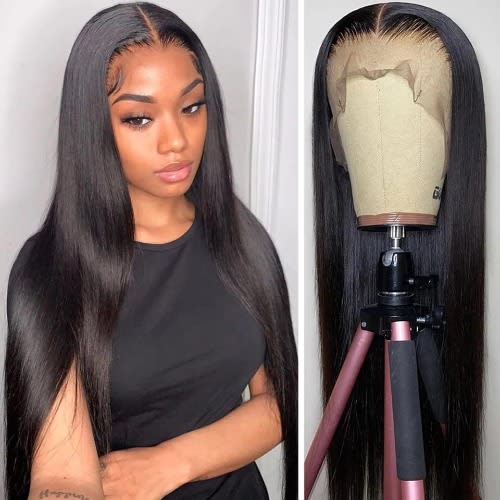 10" Human Hair Straight Wig With 13 By 4 Frontal - Natural Black