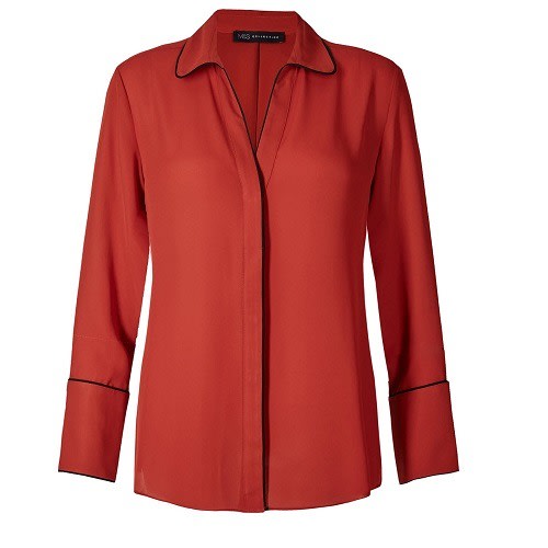 Women Collection Contrast Trim Long Sleeve Shirt - Red