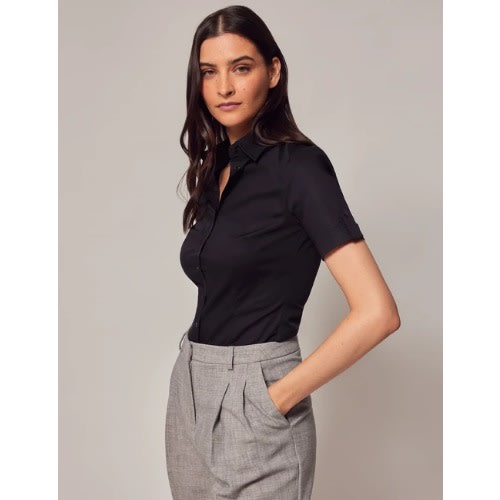 A transitional favourite, elevate your wardrobe with this feminine black shirt. Cut