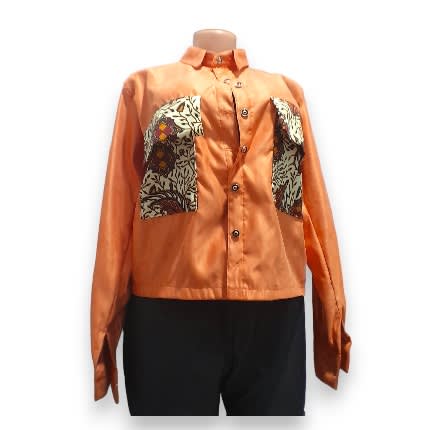 Crafted with exquisite attention to detail, this shirt features a flattering design that drapes beautifully over your body, enhancing your natural outlines. The striking orange hues add a pop of color to your ensemble, perfect for making a statement at any event or occasion.