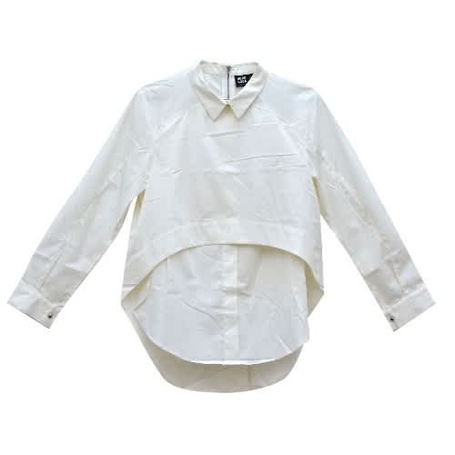 Unpleated back side.Curved heming for tucking in and when not tucked in.