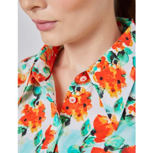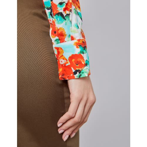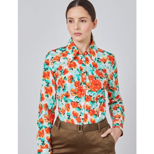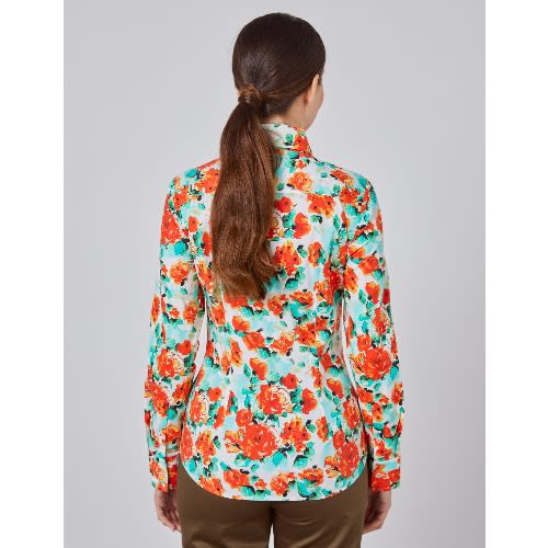 Buy Women's Cream & Red Vintage Cason Rose Floral Fitted Shirt - Single Cuff in Nigeria