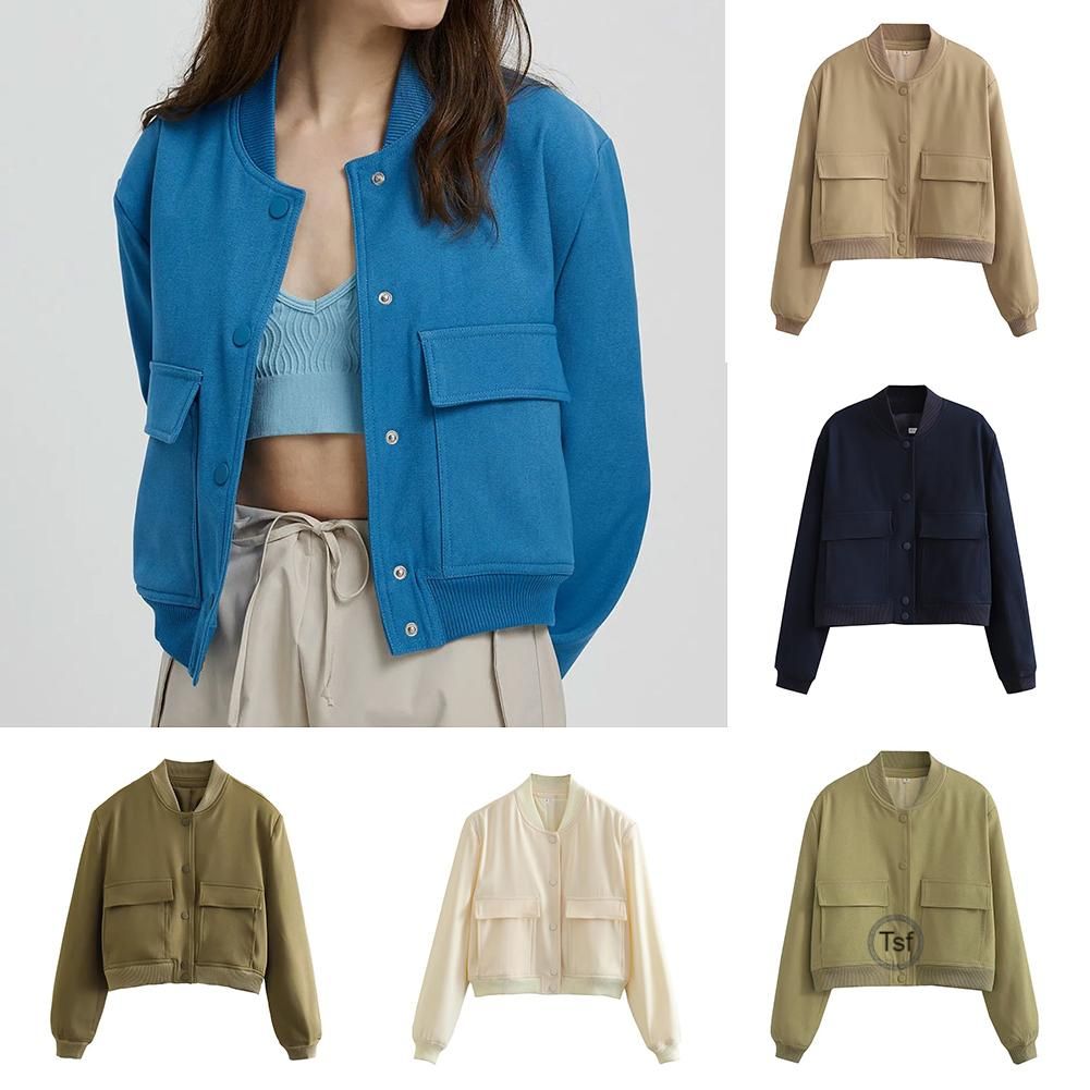 *Personalized Design: Cool women's jacket, button fastening, solid-color, stand collar, dropped shoulders, long sleeves, elastic hem and cuffs, two front side pockets, classic style.