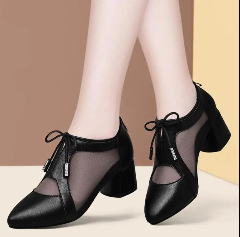 Buy Women's Fashion Mesh Single Shoe (5cm) - Black in Nigeria