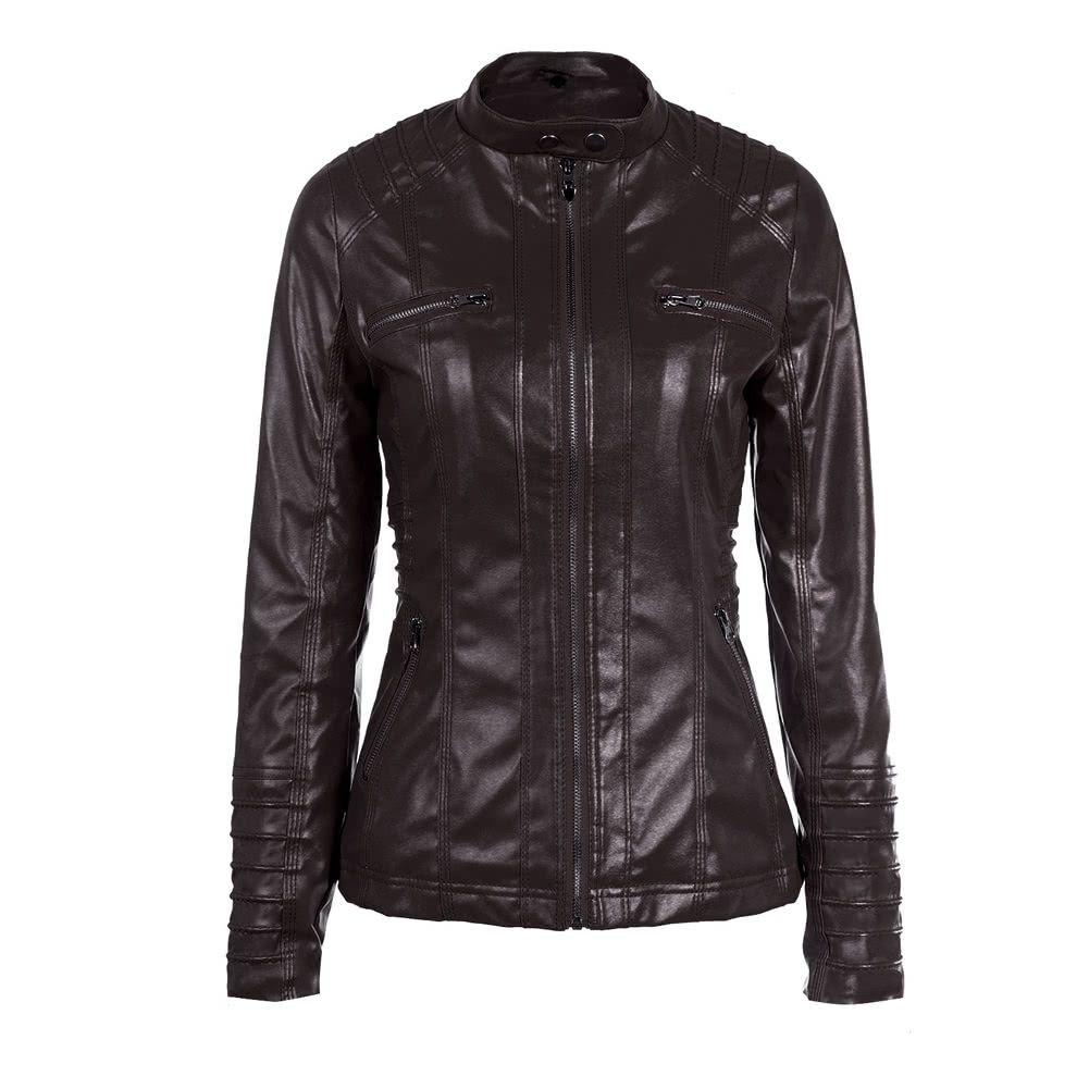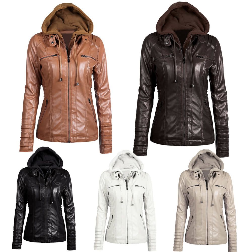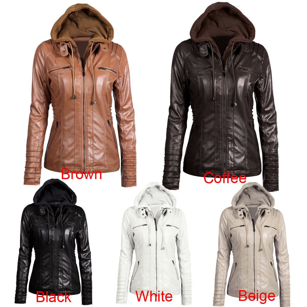 Buy Women's Faux Leather Hooded Jacket Zippered Hoodie Short Slim Motorcycle Jacket Coat-khaki in Nigeria