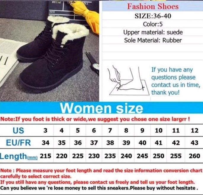 Size: 36, 37, 38, 39, 40 Color: grayPopular boots: snow boots suitable season: winter Toe shape: round head Function: keep warm Upper material: suede Sole Material: Rubber Inside the boot material: artificial short plush