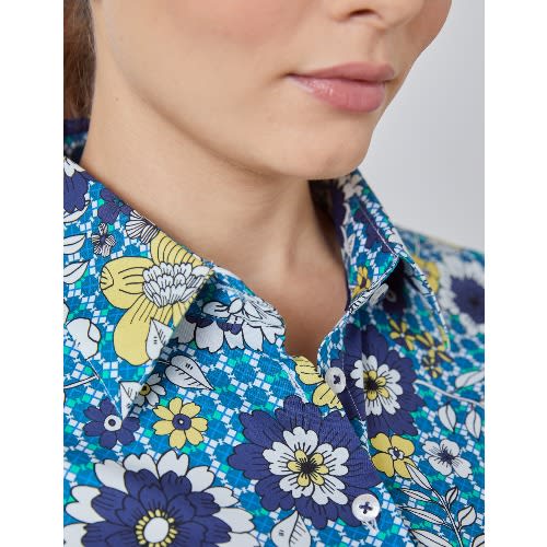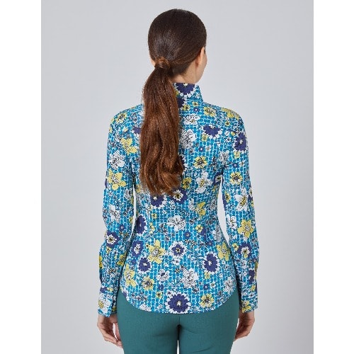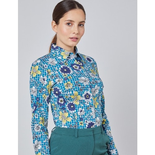 Buy Women's Floral Semi-fitted Shirt - Single Cuff - Navy & Green in Nigeria