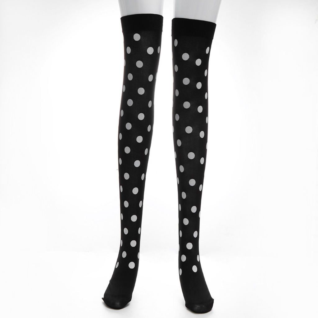 Costume stockings are very novelty. Opaque thigh high printed with bow, bs, skeletons, web, etc
