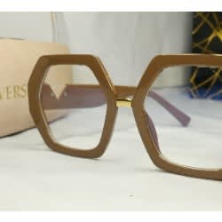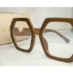 Beige Versace women's Glasses, with blue light blocking lens, strong and durable frame suitable for prescription , bold gold Versace initials on both handles