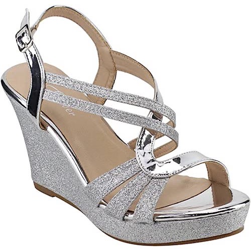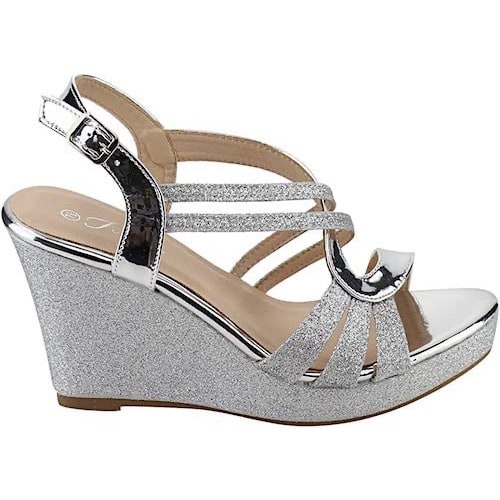 Buy Women's Glitter Strappy Wedge Heel Platform Sandals - Silver in Nigeria