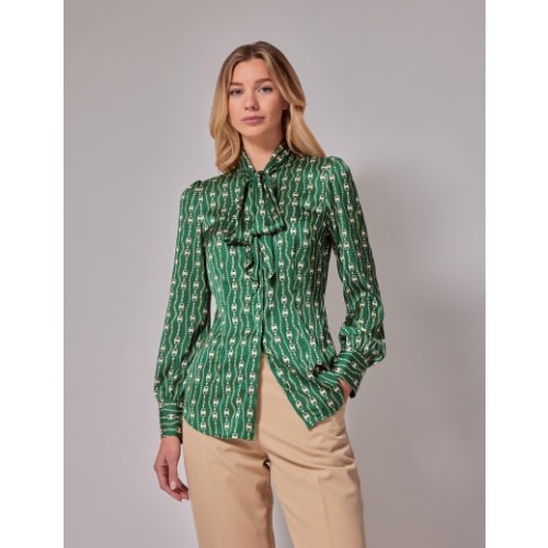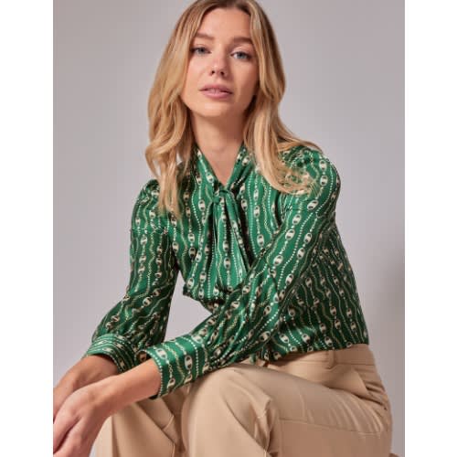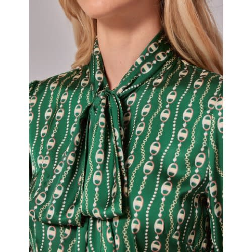 Buy Women's Green & Gold Chain Pussy Bow Blouse in Nigeria