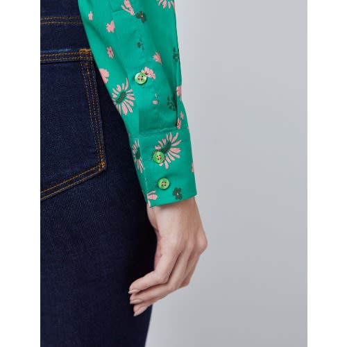 Buy Women's Green & Pink Floral Print Semi Fitted Shirt in Nigeria