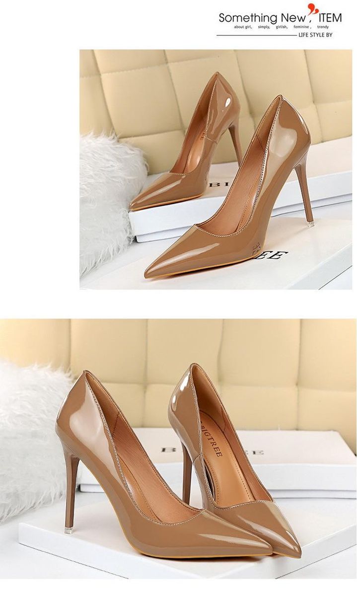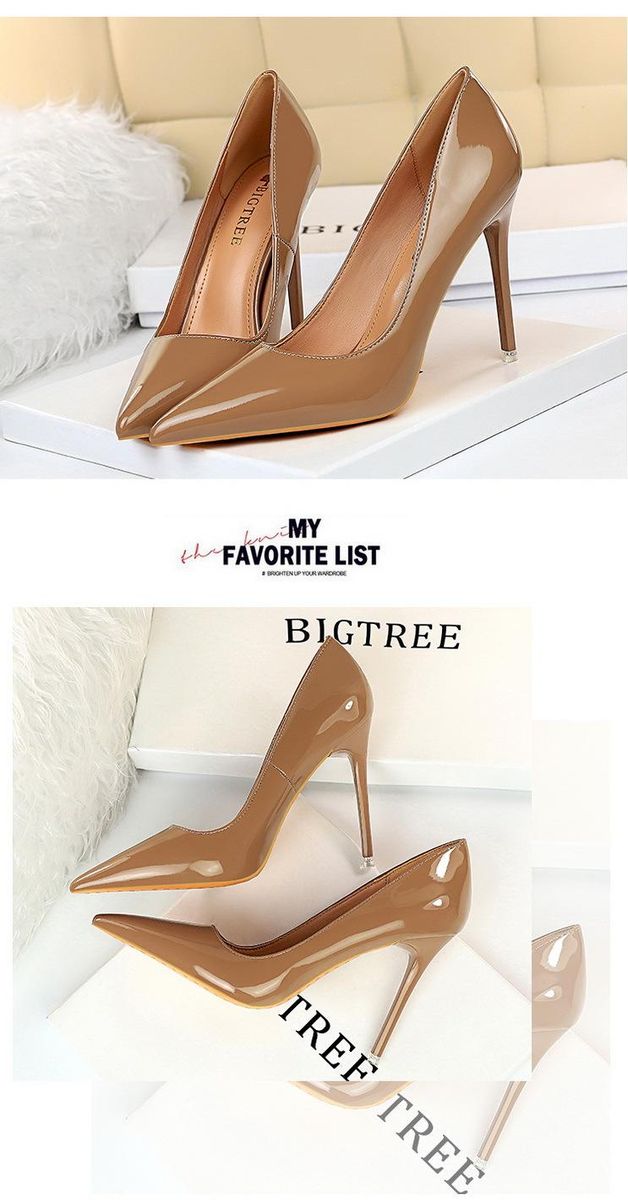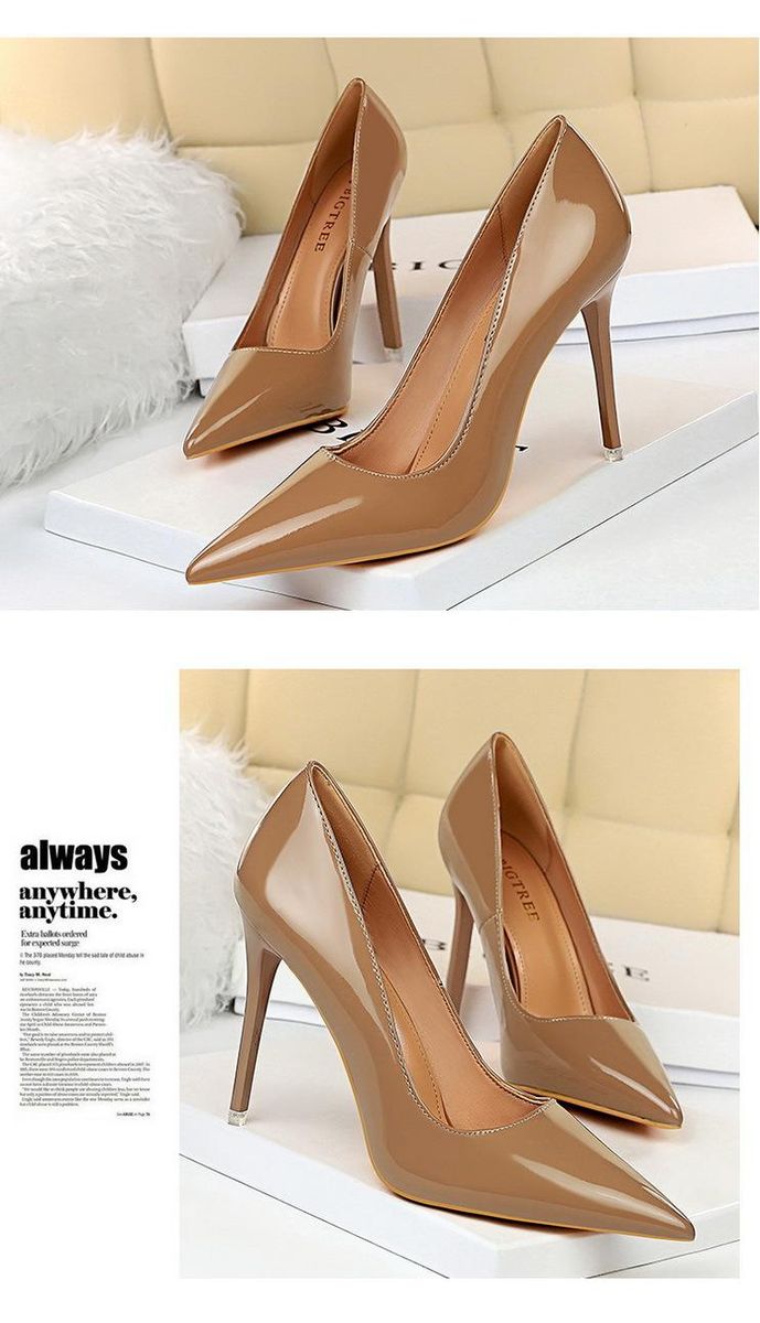 Buy Women's high heels 7.5CM-6 simple shiny pointed high heels Brown in Nigeria
