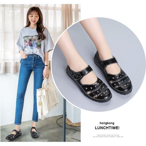Buy Women's Hollow Sandal Flat Casual Shoes Velcro Hole Shoes in Nigeria