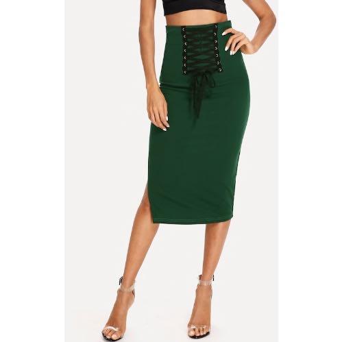 Buy Women's Lace Up Split Midi Pencil Skirt - Green in Nigeria
