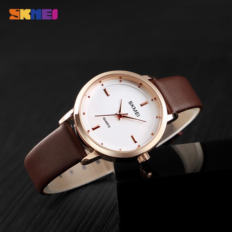 SKMEI Top Brand Fashion Women Watches Leather Female Quartz Wristwatches Ladies Thin Casual Strap Watch reloj mujer 1457