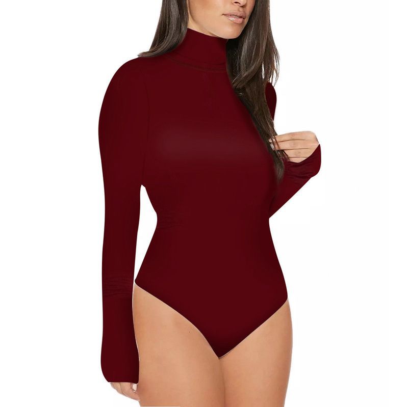 1X Womens Long Sleeve Bodysuit Stretch Ladies Leotard Body Tops Turtle Neck Jumpsuit