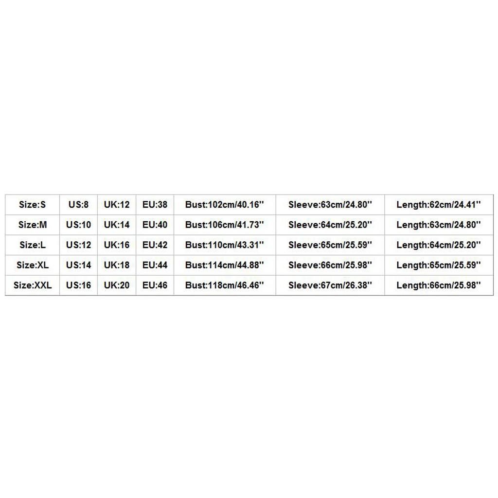 Size: XXL US: 16 UK: 20 EU: 46 Bust: 118cm/46.46'' Sleeve: 67cm/26.38'' Length: 66cm/25.98''