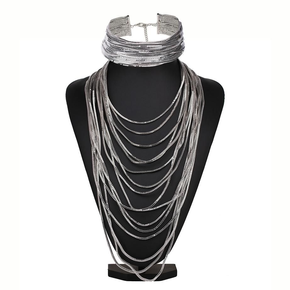 Buy Women's Metallic Convertible Gold-Color Choker For Women Luxury Statement Bib Layers Pendant Necklace JURAN Fashion Jewelry in Nigeria