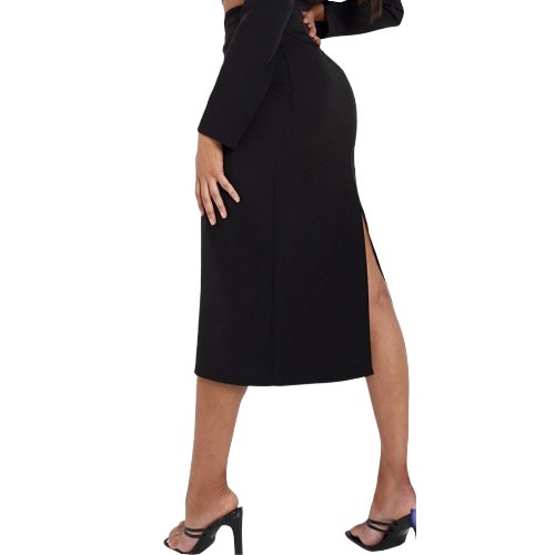 Wardrobe Women midi striped double slit black Pencil Skirt