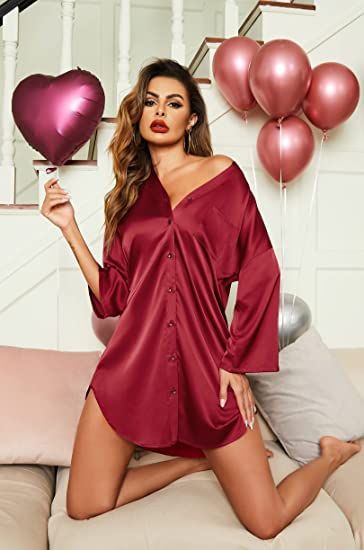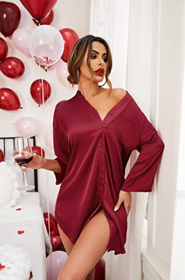 - Design: Silk sleepshirt featuring 3/4 sleeve, button down, v neck, side pocket, solid color, curved hem to make you relaxed and sexy. The front button is perfect for nursing moms, not only can protect your privacy, but also can make you more fashionable