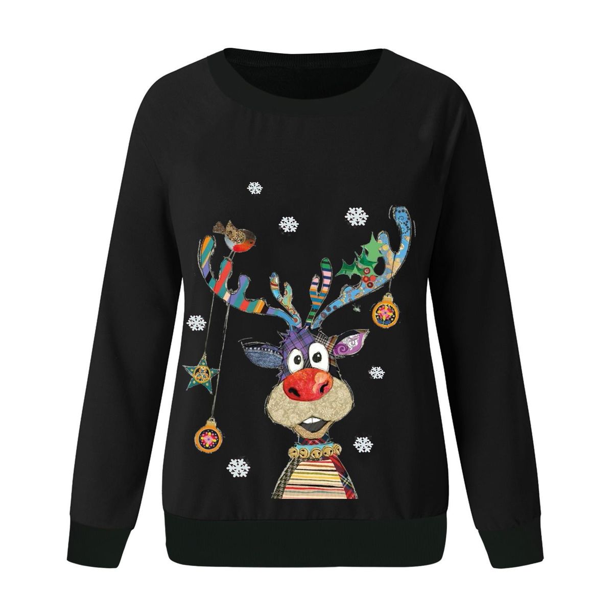 Women's O-Neck Christmas Print Long-sleeved Sweatshirt Casual Blouse Pullover Tops