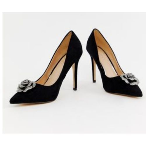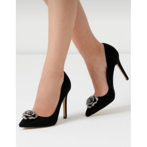 shoe from Lipsy featuring a rose trim detail and court style. Founded during the 80s in Britain, the famed fashion label Lipsy continues to deliver trend-led collections of clothing to young women around the world. Lipsy pumps allow you to feel as if you've stepped straight off the catwalk and provide you with an exceedingly contemporary style. Each of this women's office shoe is fitted with a thin stiletto heel and made for a fine addition to a glamorous and luxurious ensemble. This classy shoe is produced using a combination of sleek leathers, jewel adornments and striking shades to create an impossible to ignore look. Heels by Lipsy, The easiest way to upgrade your outfit, Slip-on style, Embellished floral design, Pointed toe, High heel. Renowned for their statement party dresses, London fashion brand Lipsy channel a young, fun vibe in their partywear, footwear and jewellery collections. Dedicated to delivering fashion forward styles; look out for structured cuts, bold prints and heavy embellishment. Upper: 100% Fabric, Lining And Sock: 100% Synthetic, Outsole: 100% Resin