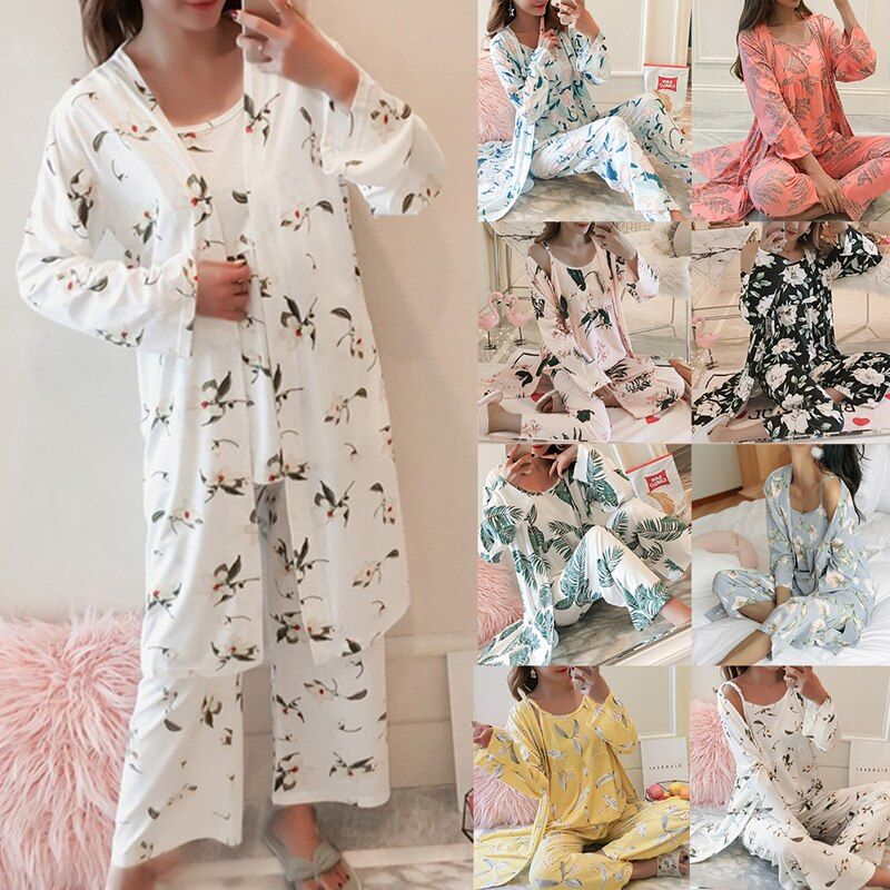Hello, Friends. Welcome tomy store IN STOCK FAST DELIVERY!!! We support drop shipping/wholesale, welcome to contact us to get more information Features: Package includes:Women Pajamas Set Size:M-L Material:Cotton,Polyester Type:Print Women's 3 pieces pajamas sets 2019 spring and summer Furnishing wear Sexy Women Pajama Sets Nightdress+Robe+Pant Female Pajamas. Notes: 1. Please allowed 1-3mm differences due to manual measurement, thank you for your understanding! 2. Due to the difference between different monitors, please understand that the picture may not reflect the actual color of the item.