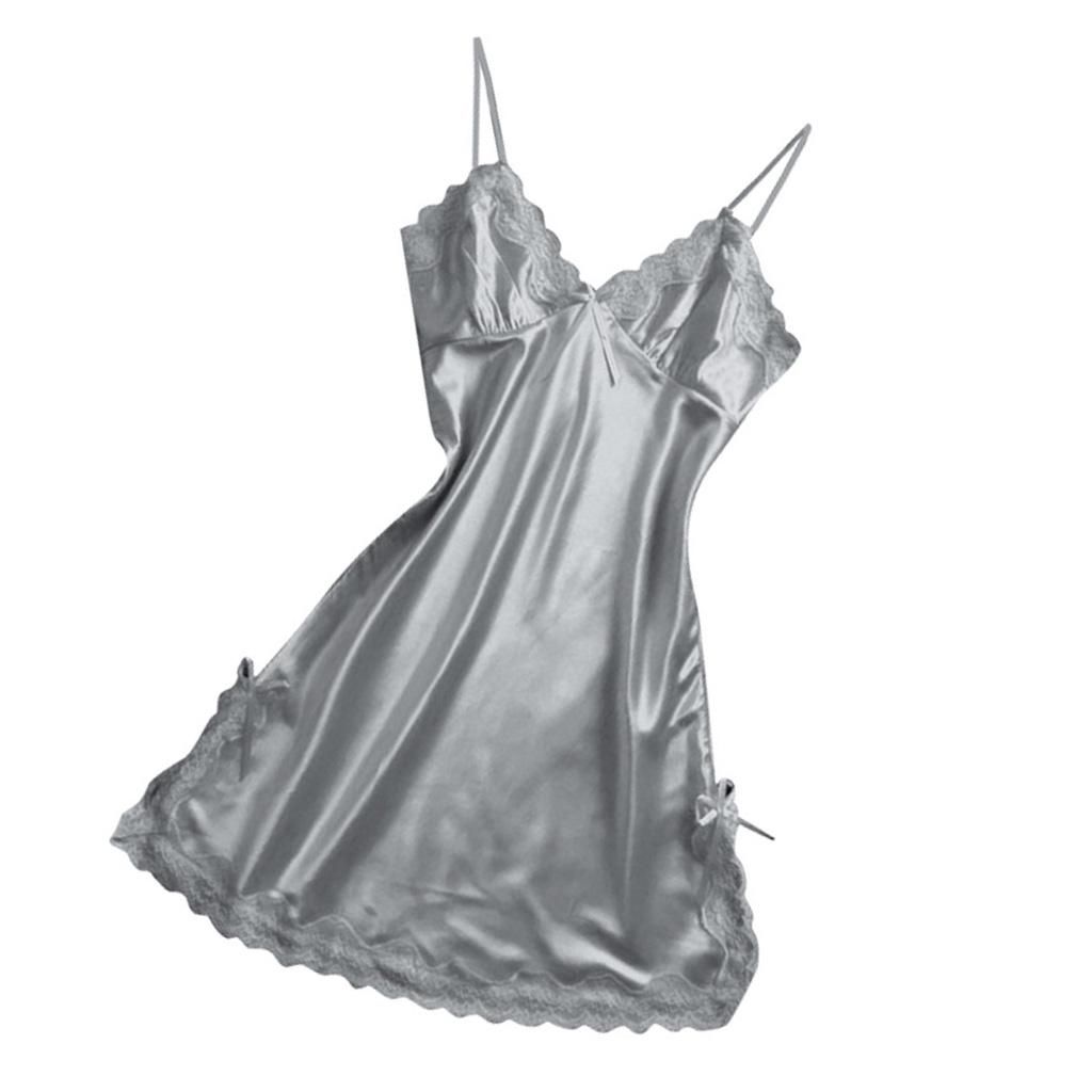 grey color womens satin lingerie nightgown, soft, comfortable and stretchable enough to be wore as a sleepwear, nightgown and loungewear.