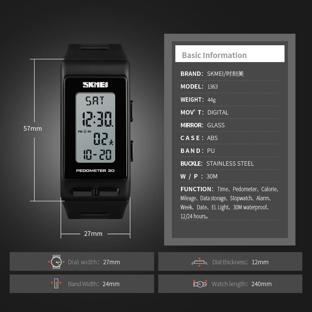 SKMEI Pedometer 3D Men Women Sport Watch Calories Digital Wristwatches For Mens Ladies Fashion Waterproof Bracelet reloj 1363