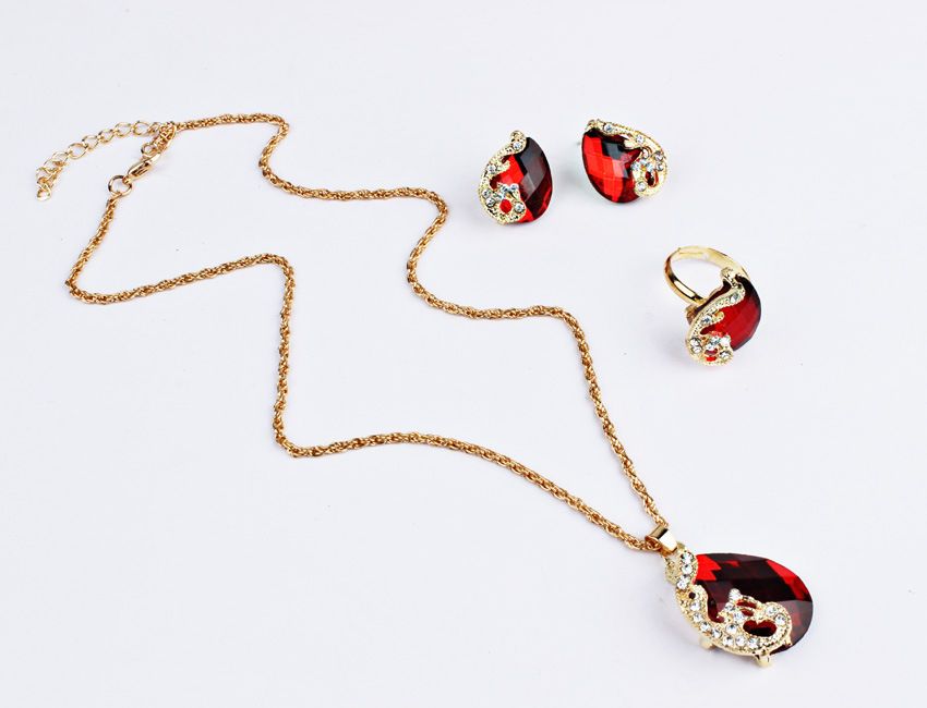 Jewelry set consists of necklace, ring, earrings.