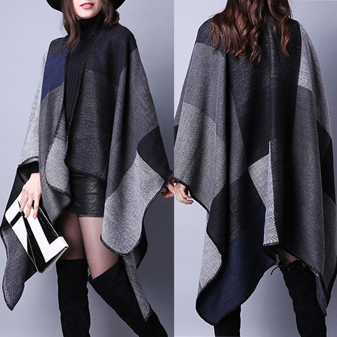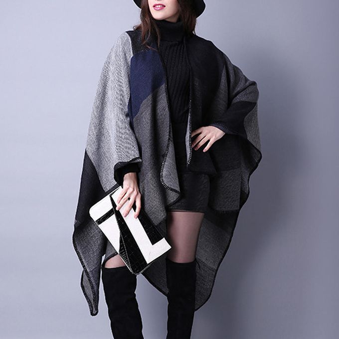Open Front Poncho Cape;Color Block Shawl Wrap;Fleece Blanket Cape;Wool Blend Shawl Coat ;Women Knitted Cape;Winter Wrap Poncho;Shawl Cardigan
