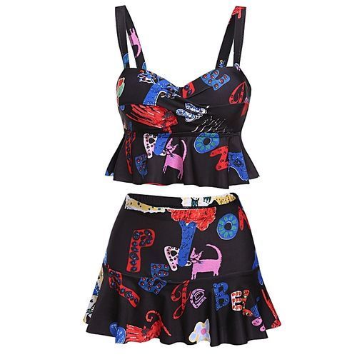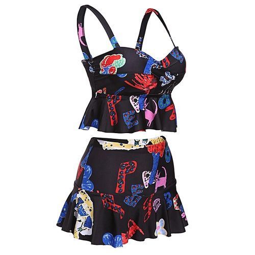 - Adjustable spaghetti strap, print tankini top, with removable padded.