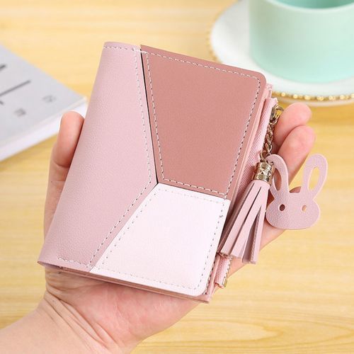 Women Short Wallet PU Leather Splicing Zipper Tassel Card Holder Coin Purse Trendy Fashion Wallet