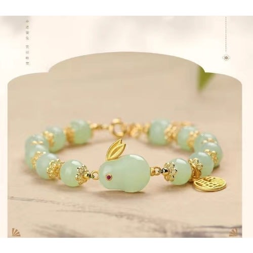 In Chinese folklore, the rabbit often is portrayed as a companion of the Moon goddess Chang'e, constantly pounding the elixir of life for her and some show the making of cakes or rice cakes. The Moon Rabbit or Moon Hare is a mythical figure in East Asian and indigenous American folklore who lives on the Moon, based on pareidolia interpretations that identify the dark markings on the near side of the Moon as a rabbit or hare.Suitable Wrist Circumference Materials: hand-selected agate, white jade, Hetian nephrite jade, etc. The stones are selected by artsians with more than seven years experience in jewelry making, rinsed and polished by hands. Our jewelry artworks are directly from our studio, using many royal jewelry making techniques. Affordable work of art, yet highly collectible.