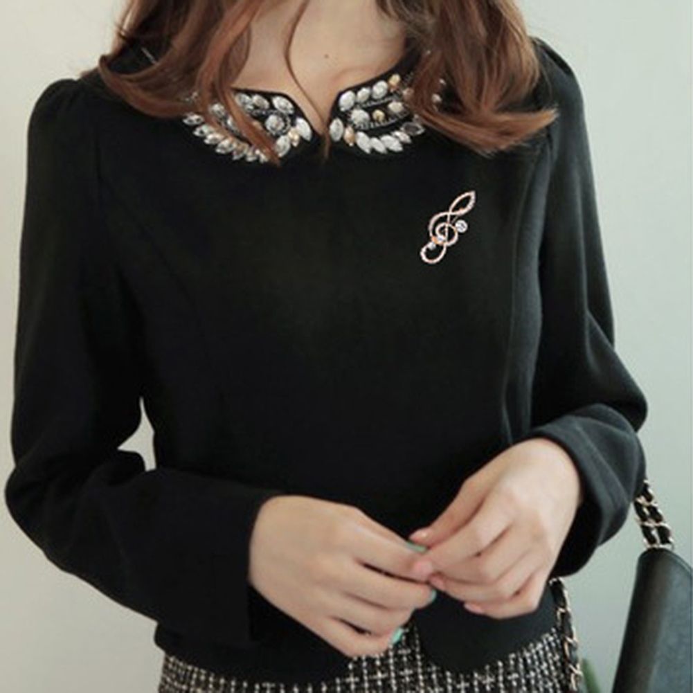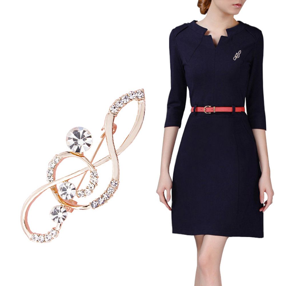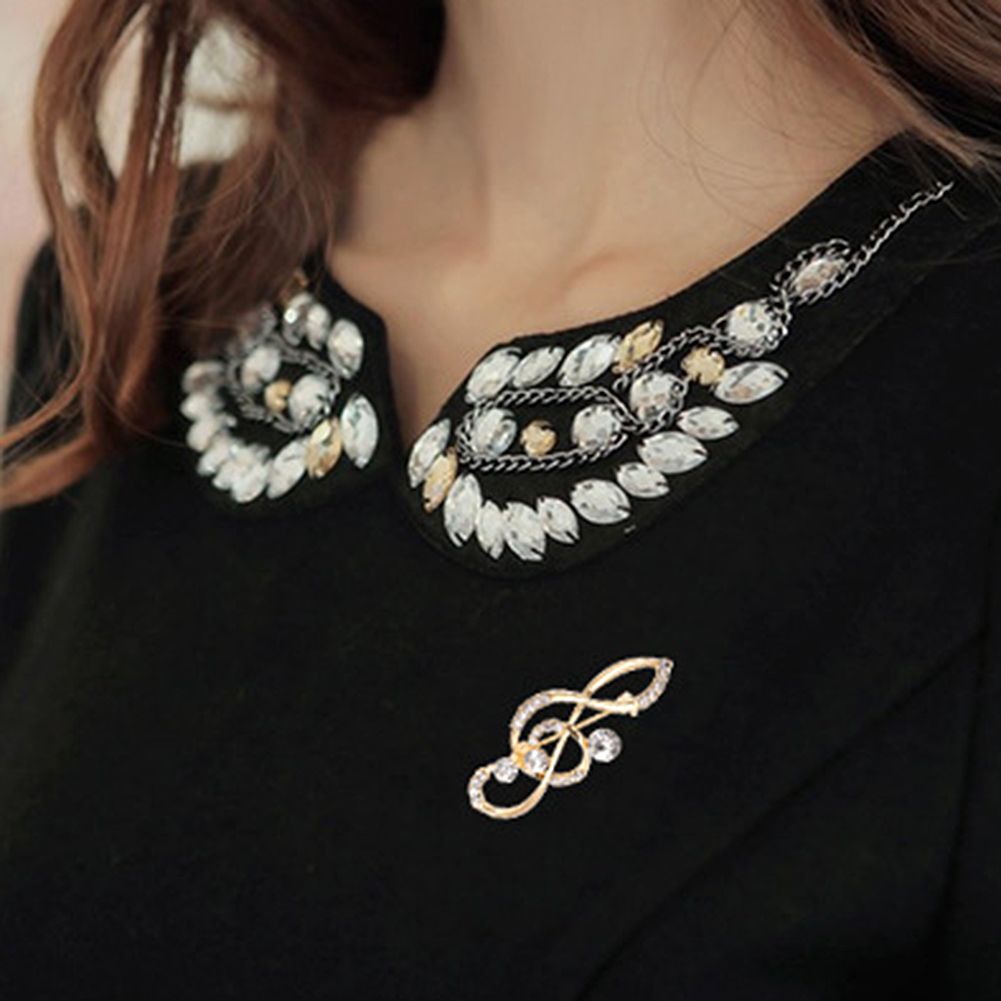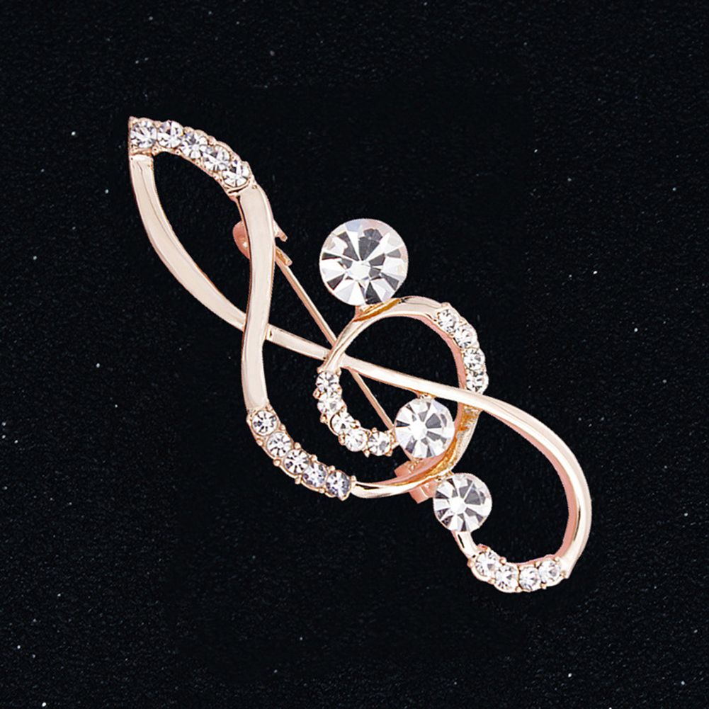 Delicate note shape brooch pin with shiny rhinestone, eye-catching and elegant.