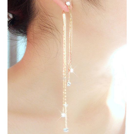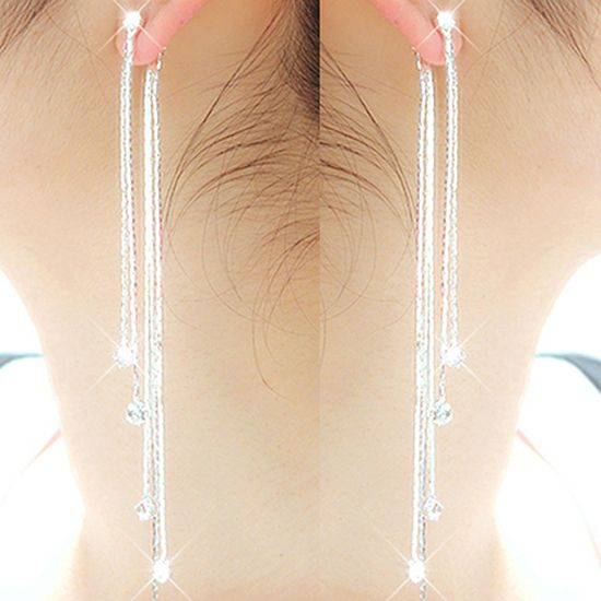 Features: Rhinestone Design, Super Long Chain Tassels ( 3 layers' tassels in the back, 2 layers' in front. )