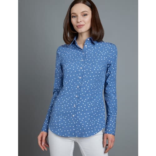 Buy Women's Royal & White Dobby Spot Fitted Shirt - Single Cuff in Nigeria