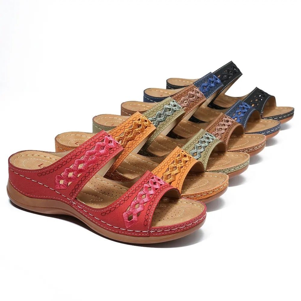 100% new with high qualityLeather Material: PUSole material: TPRJump height: 1-3cmStyle: SandalsColor: Red, blue, brown, green, blackSize: 35-43