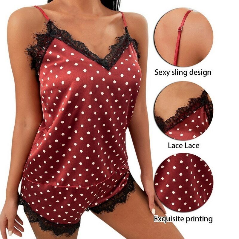 Buy Women's Satin Lace Pyjamas Sleepwear Set Red in Nigeria