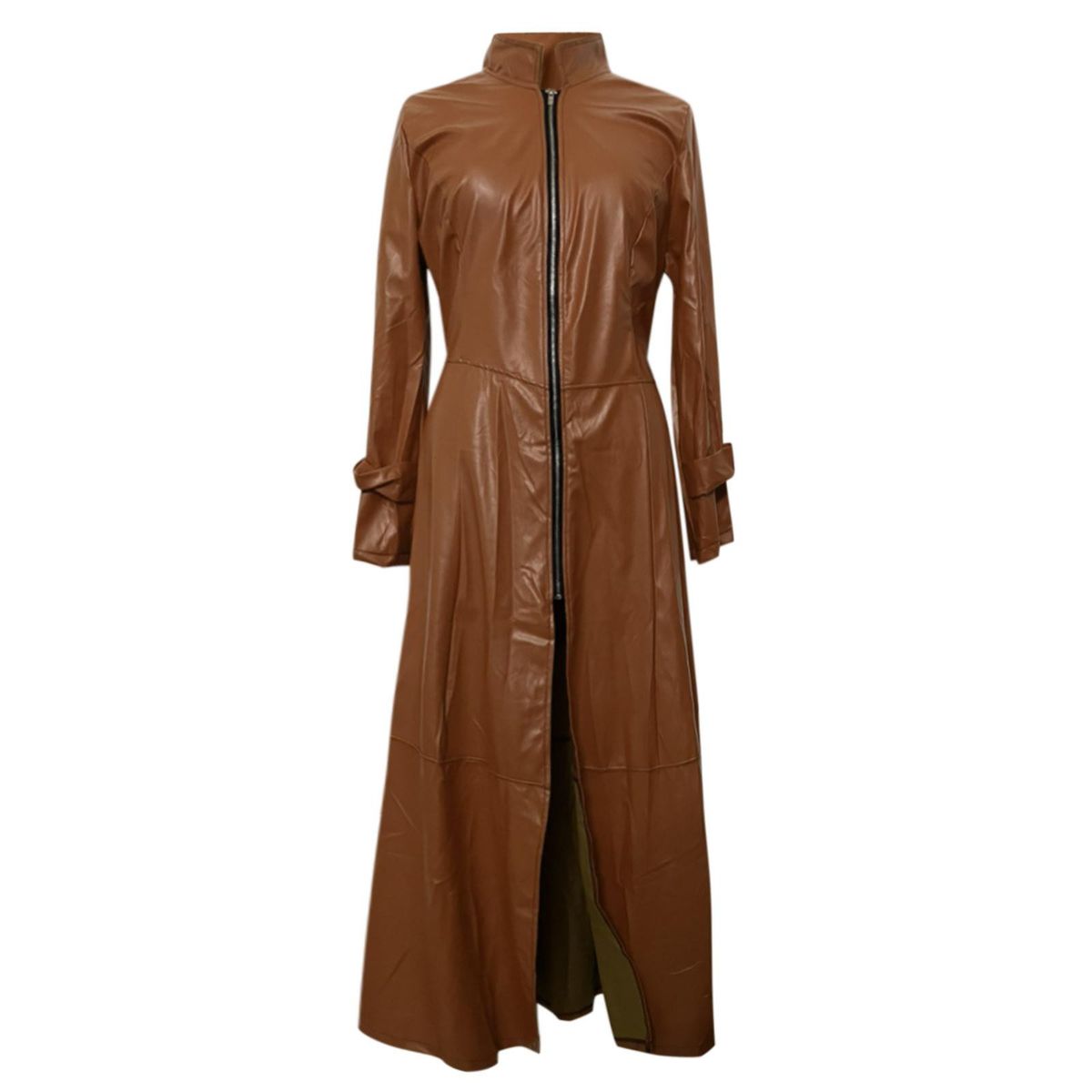 Women's Fashion Sexy Autumn And Winter Solid Long Leather Coat Imitation Leather Windbreaker Coat