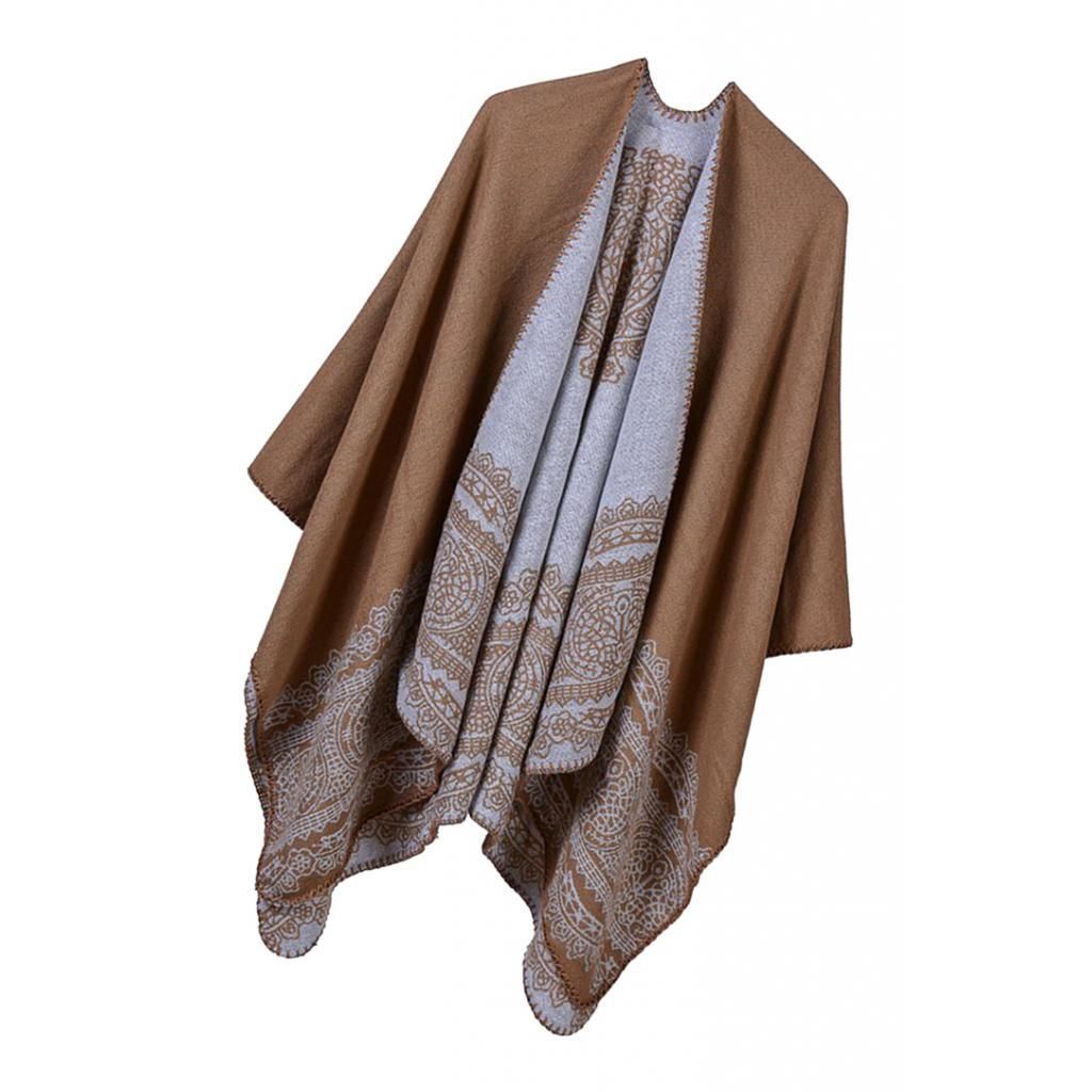 Reversible shawl, lace pattern decorations, open front that can easily be paired up with every clothing in your wardrobe.