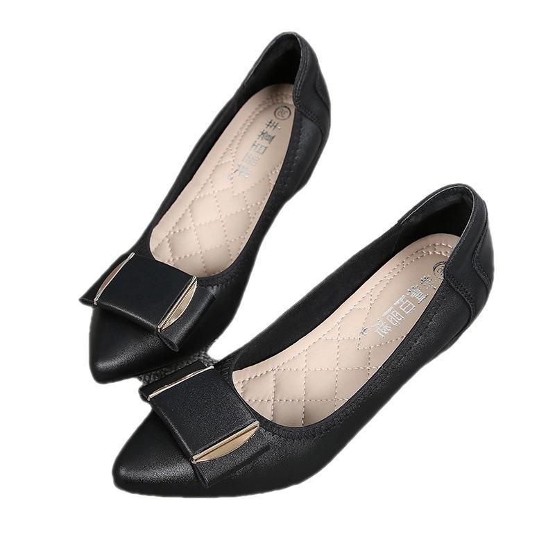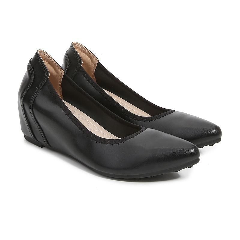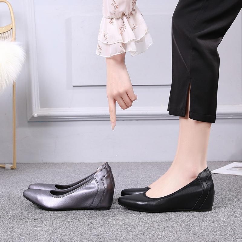 Buy Women's shoes with small slope heels, black work leather shoes, soft soles, raised flat bottoms, in Nigeria